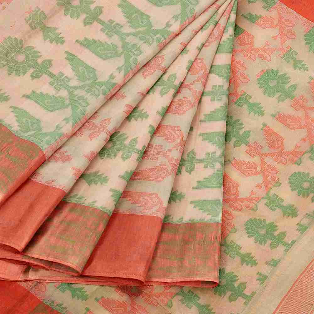 Beige Dhakai Jamdani Saree – Lightweight Cotton for Puja & Everyday Traditional Wear